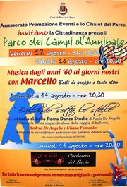 Maggiori informazioni da venerdì 12 agosto e fino al 15, l’assessorato alla Promozione eventi e l’associazione “Chalet del Parco” organizzano, dalle ore 20,30, presso il parco comunale dei Campi d’Annibale, quattro eventi musicali di sicuro divertimento.